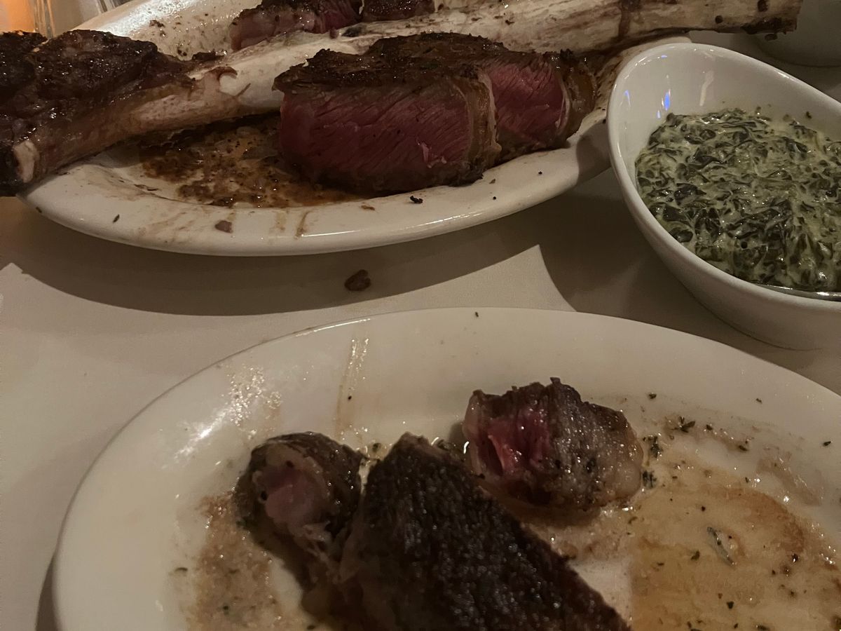 ステーキが運ばれてきたとき、そのボリュームと見た目に驚きました。肉の質は非常に高く、ジューシーで柔らかい口当たりでした。焼き加減も完璧で、私たちの要望通りのステーキを提供してくれました。付け合わせの野菜やポテトも美味しく、全体的な食事の満足度は非常に高かったです。