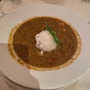 前菜にシーフードガンボスープとシーザーサラダを選びましたが、これだけでお腹いっぱいになります。