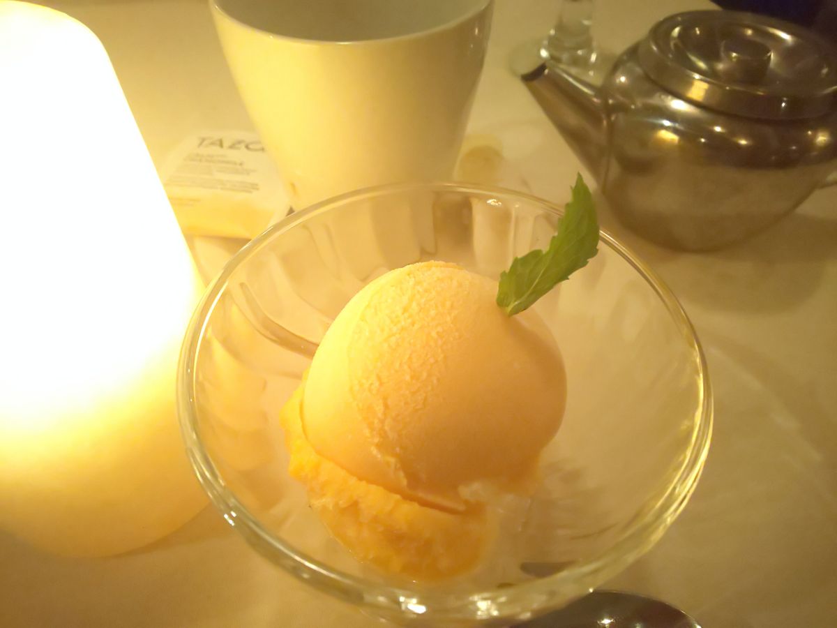 デザートのマンゴーソルベは、濃厚でいて後味さっぱり!