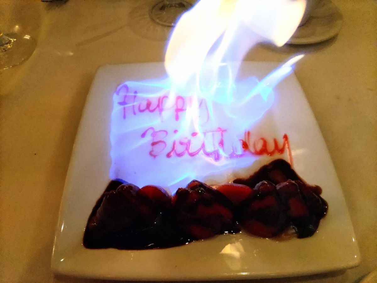 誕生日だと伝えると、イチゴにソースがかかっていて、Fire!!!