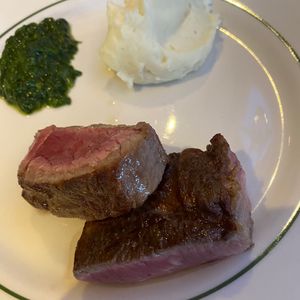 お肉はサーロインにいました。最高に美味しかったです。コースの海鮮の前菜も新鮮でした。牡蠣は小ぶりでしたが絶品でした。美味しい食べ方を丁寧に説明してくださったので 試してみました。