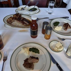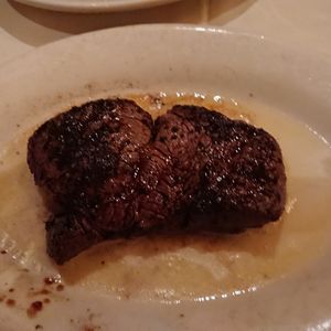 4歳の孫がいるので昼間のウルフギャングにお邪魔してみた。すぐに落ち着いた席に通され、飲み物と孫のパスタのみ頼む。大人2人はすでにフィレ肉と伝えてあるので楽。お肉は裏切らない美味しさ。付け合わせも含めて量的にも大満足。余らさずにちょうどで完食。夜はシェアしても多めなのでランチは良いなぁと実感。よく食べる方は美味しいパンをたくさん召し上がって。きっと満足度上がります。