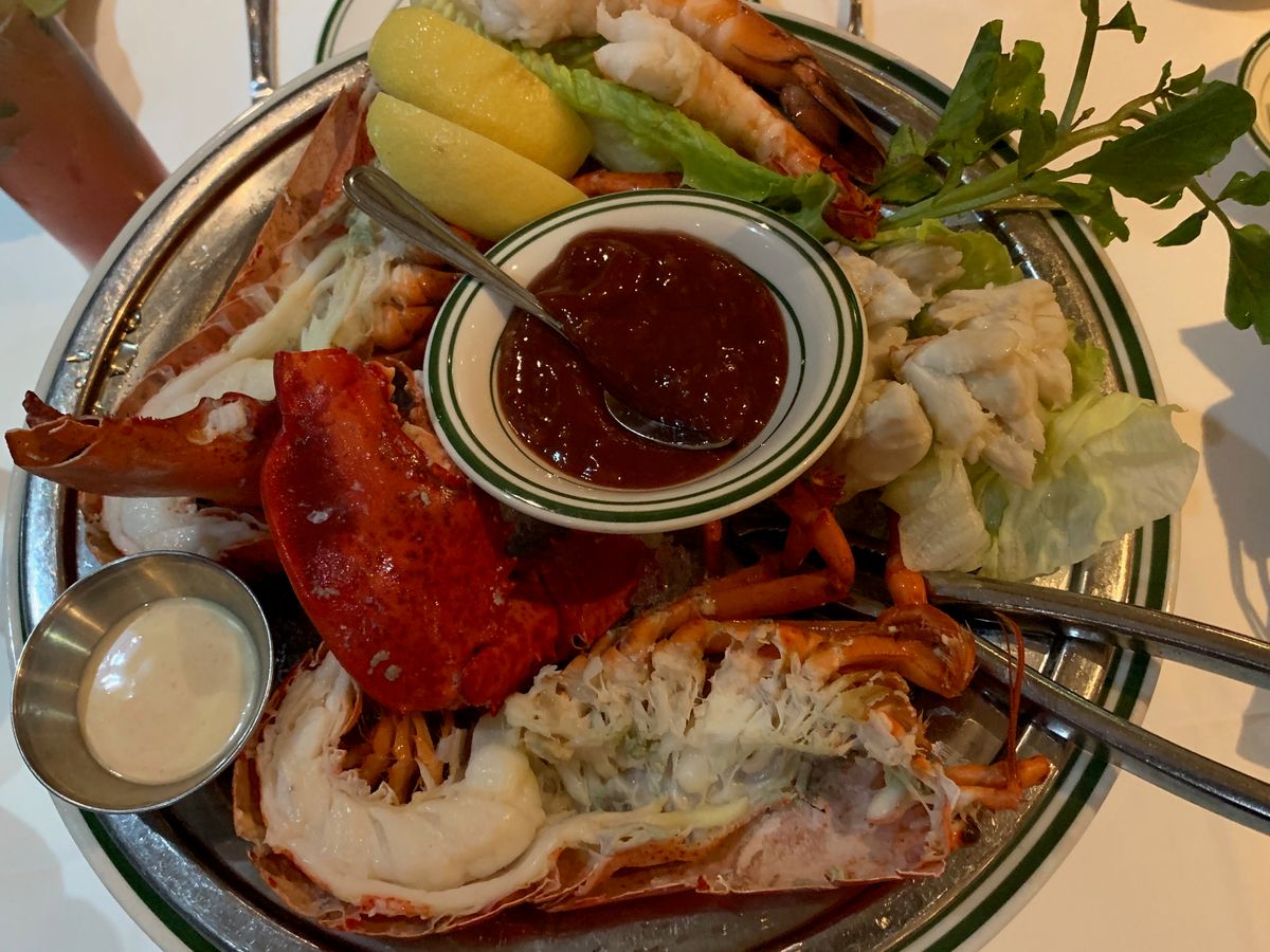 ステーキの前に出てくるシーフードカクテル(シーフードの盛り合わせ)はとても美味しくおすすめです!