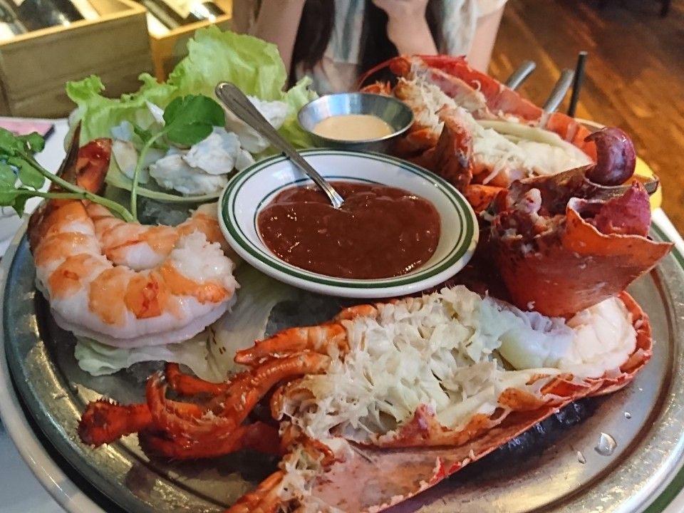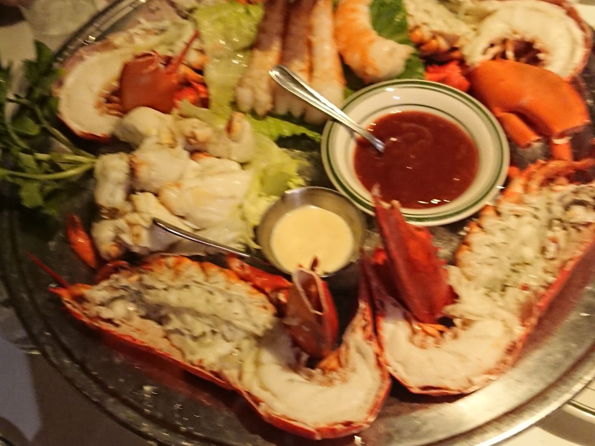 料理は、オマール海老は半身でしたが十分。ハサミで格闘しているとスタッフさんが、手袋してにこやかに割ってくれます^_^