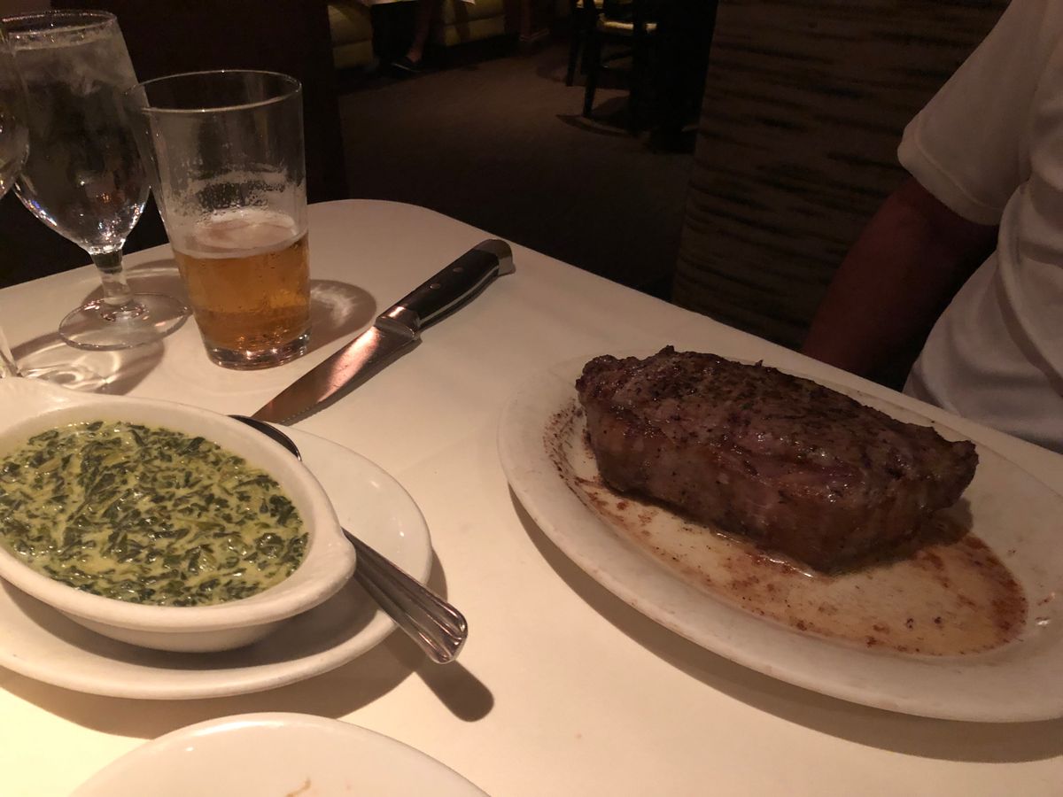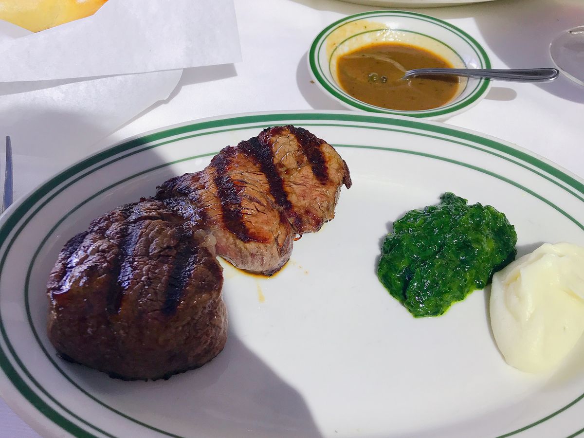 料理まで注文済みなので、黙って座っているだけ。清算もクーポンで済んでいるので、チップも悩む必要なし。肝心のステーキは最高でした。