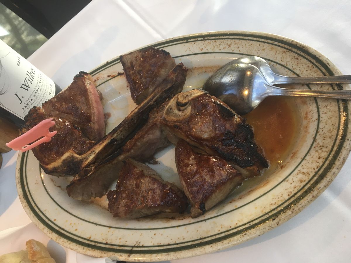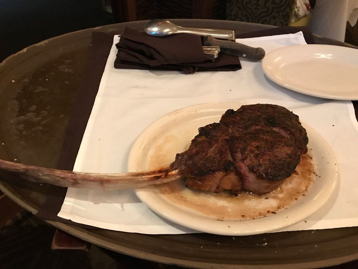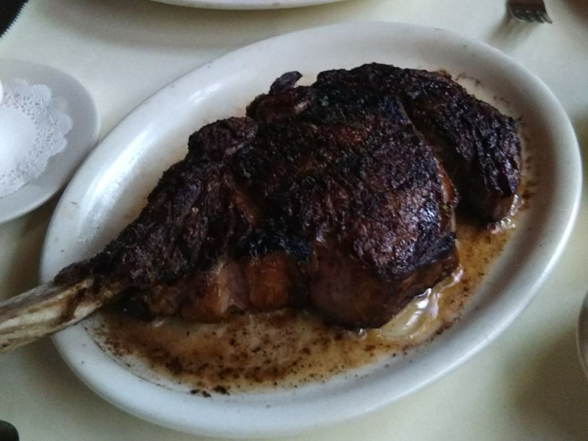 このTボーンステーキが食べたくて予約をしました。日本ではなかなか予約が取れないので奮発です(笑)。高級店の雰囲気ですが、意外にラフな格好をしたお客さんもいました。2人で違う焼き加減でお願いしましたが、オーダー通り、それぞれに取り分けてくれます。前菜のシーフードプレートだけでもテンションが上がりまくりなのに、この大きくてやわらかいステーキの登場!そして付け合わせのポテトとほうれんそうがまたでかい!そして美味しい!おしゃれにワインでも、と思っていましたがまぁビールが進むこと。結局アルコールはビール一択で終了。デザートもしっとりたっぷりで大満足。大食いの私たち、コースの写真を見て「足りないかな?」と話していたのですがとんでもない、お腹いっぱいになりました。ウェイターさんがとても気さくで、変顔で一緒に写真を撮ってくれました(笑)。ものすごい人数のウェイターさんがフロアをうろうろ、お客さんの食事の進行具合を見守っていて、高級店は違うなと思いました。