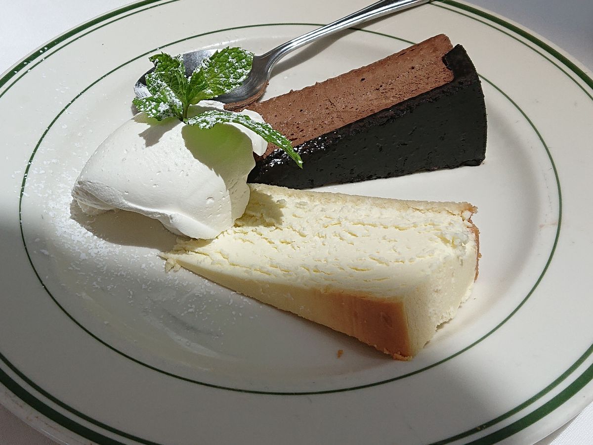 チョコレートケーキとチーズケーキのホイップクリーム添え…甘い物好きな方ならウェルカム