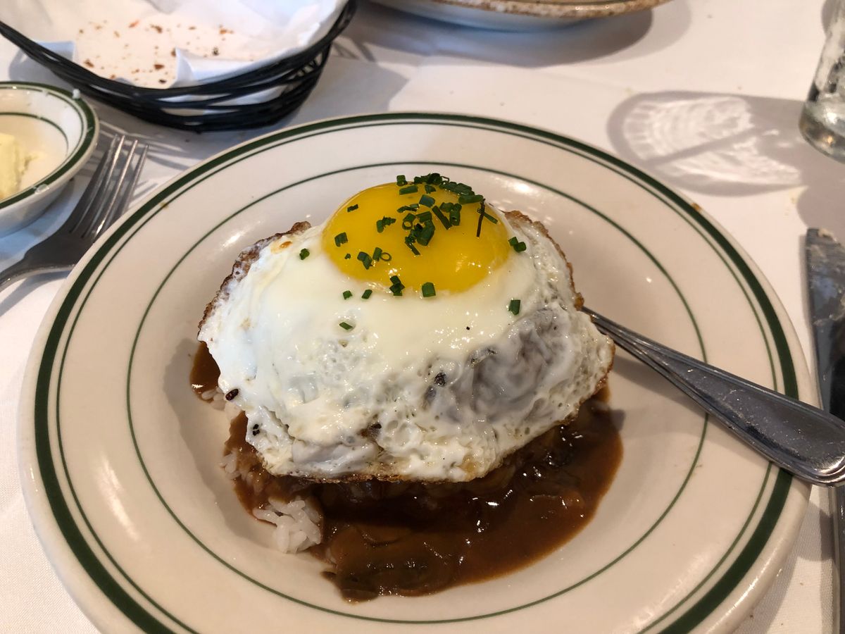 料理はお肉はジューシーで美味しいですがかなりのボリュームです。パンが3種ほどついてくるのですが、お腹いっぱいで食べれなかったので持ち帰りOKか確認するとOKとのこと。ウエィターさんが紙袋に入れて持ってきてくれたのですが、中身をみると違う種類のパンにすり替わっていて???少し複雑な思いでした。総合的に全て美味しかったですが、次回また来るかと聞かれると…うーん。次回はハッピーアワーにロコモコを食べに来てみようかな。