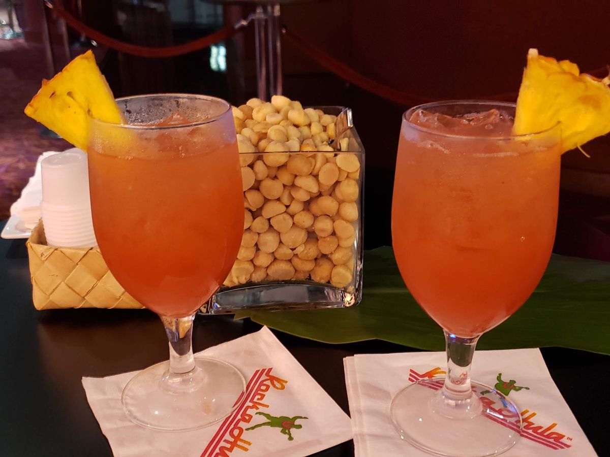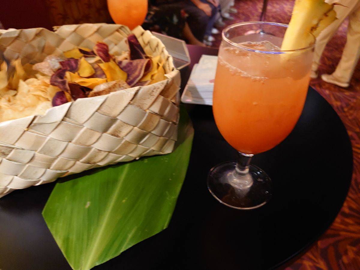 エルビスプレスリーのそっくりさんと写真を撮ってもらったあと、ウェルカムマイタイをいただき4コースディナーです。