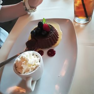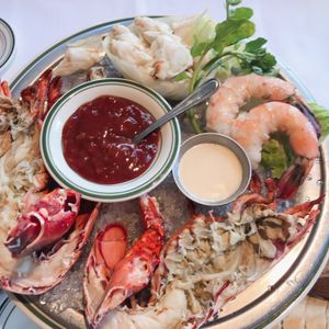 予約ですので、すぐにテーブルまで案内してもらえました。シーフード盛り合わせ、ステーキともに運ばれてきた瞬間、歓声が上がりました。味はとても美味しく、贅沢なディナーでした。ステーキソースがありますが、塩コショウでシンプルに頂きました。デザートのケーキも、美味しかったです。
