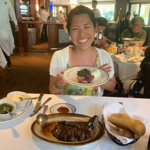初めてのハワイなので、有名なステーキの老舗はやはり行かないと思い予約しました。始めのシーフード盛り合わせも美味しくみんなペロッと食べてしまい、そのあと超特大のステーキにみんな興奮し、カットする前に「写真を撮る?」と聞いてくれるので、バシャバシャ撮ってからカットしてもらいました。各々の焼き加減のものをお皿に盛り付けてくれ、柔らかくて美味しくて、もう一度食べたいです!また、付け合わせのほうれん草のペーストが買って帰りたいと思うくらい美味しかったです!