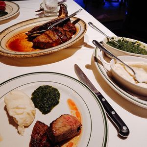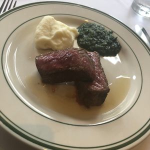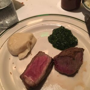 メイン料理を、プチフィレステーキとローストチキンにしてシェアしました。どちらもとても美味しかったです!前菜、メイン、サイド、デザートまで日本人の胃袋サイズで食べきれてホッとしました笑 店内も落ち着いていてとても満足です。