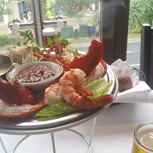 マッシュポテトとステーキ、シーフードの組み合わせ。これだけで、もうお腹いっぱいになります。