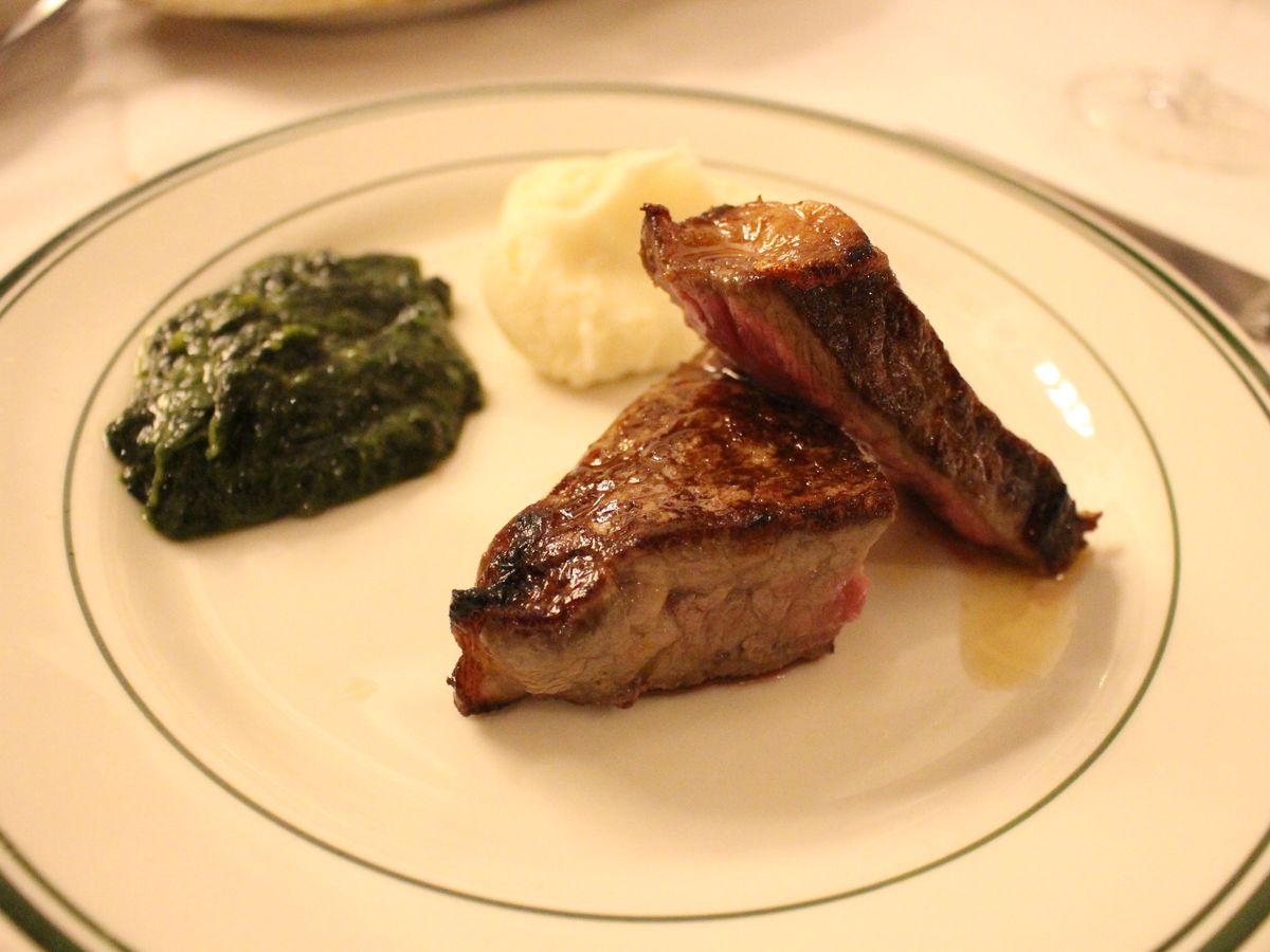 当日は結構混んでいましたが、すぐに席に案内されました。席だけの「一人」のメイン料理は、ウェーターさんお勧めのフィレステーキ、そしてデザートもオーダーしました。サラダやサイドディッシュは「三人」でシェアして頂きました。