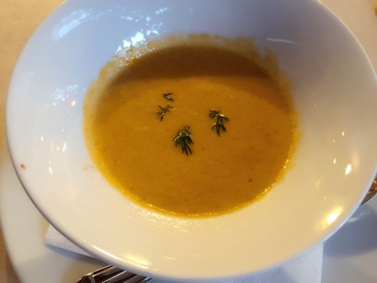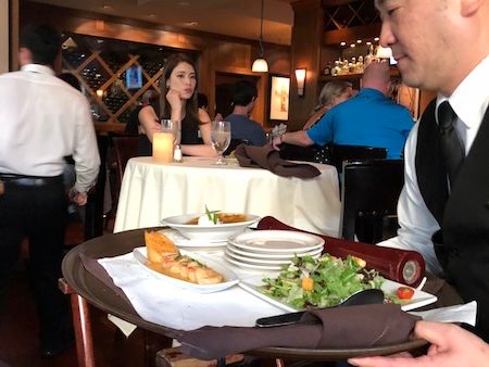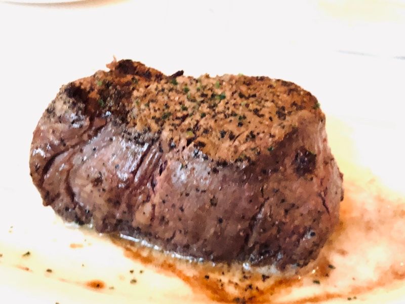 1人でしたのでディナーセットを16:30に予約。予約時間より早めに行って順番待ちをしたところ、1人でも気まずくならない席に案内してくれ、店員さんも気遣ってくれてとても良くして頂きました。スープ・ミニフィレステーキ・マッシュポテト・アイスクリーム・アイスティーを選択。小食気味の人は前菜やパンなどでお腹がいっぱいにならないようにメインが来るまでパンは食べずに、前菜をちょっと摘むくらいの方がいいと思います。ステーキはミディアムレアをお奨めします。日本よりも赤身肉は美味しいと思います。程好い塩加減のバターソースでした。ソースにパンを浸けて、スープと一緒にいただくとより美味しかったです。