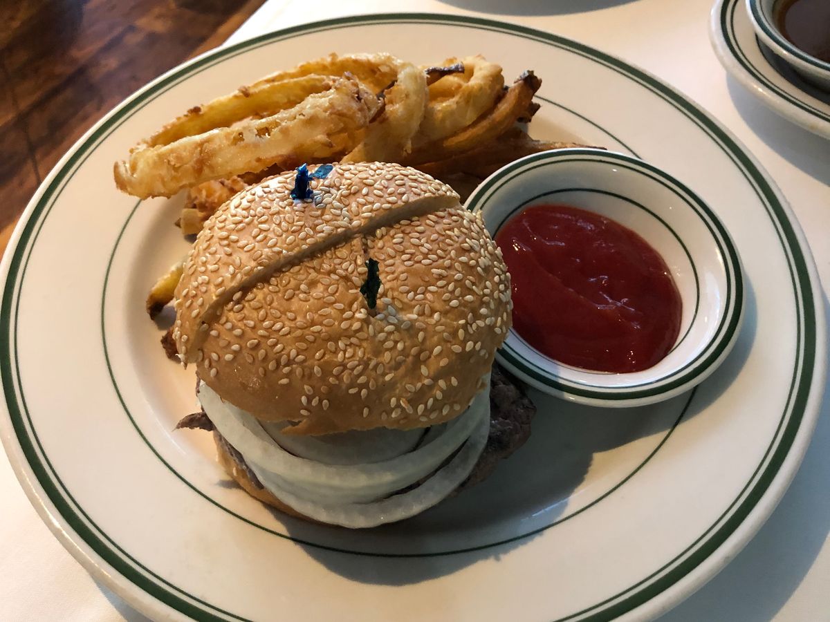メニューだけでは量がわからないので仕方ないですが、アメリカであることをお忘れなく。オニオンリングさえも皿に山盛りでした。