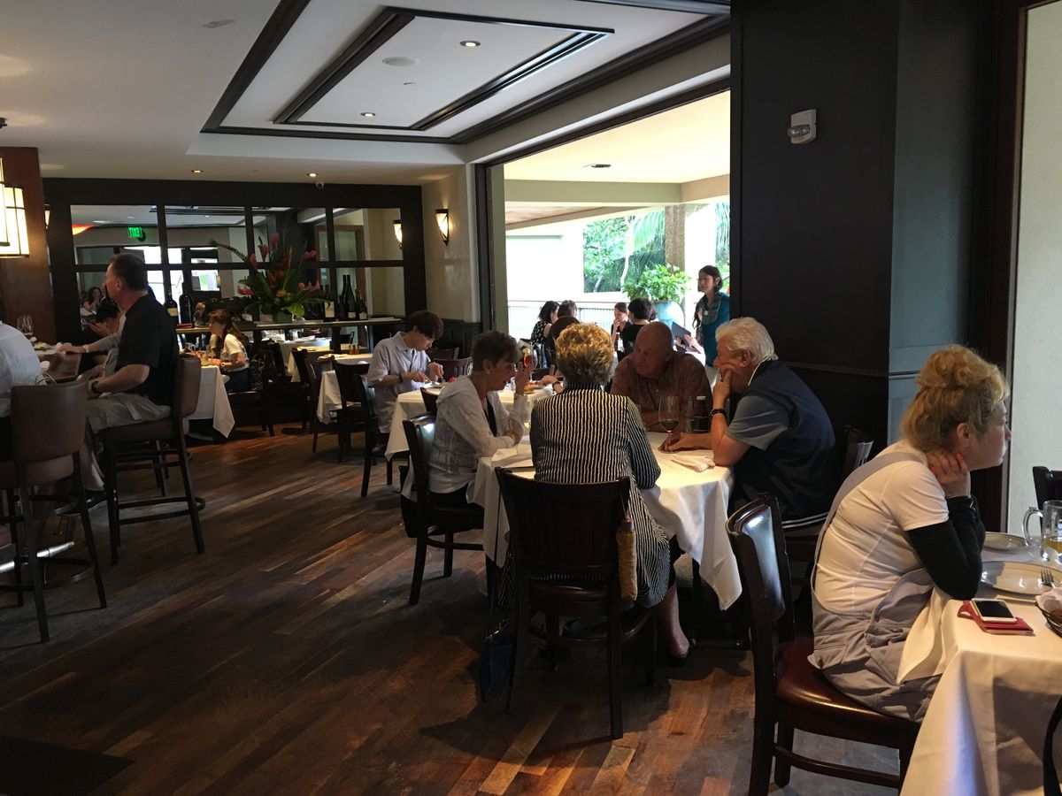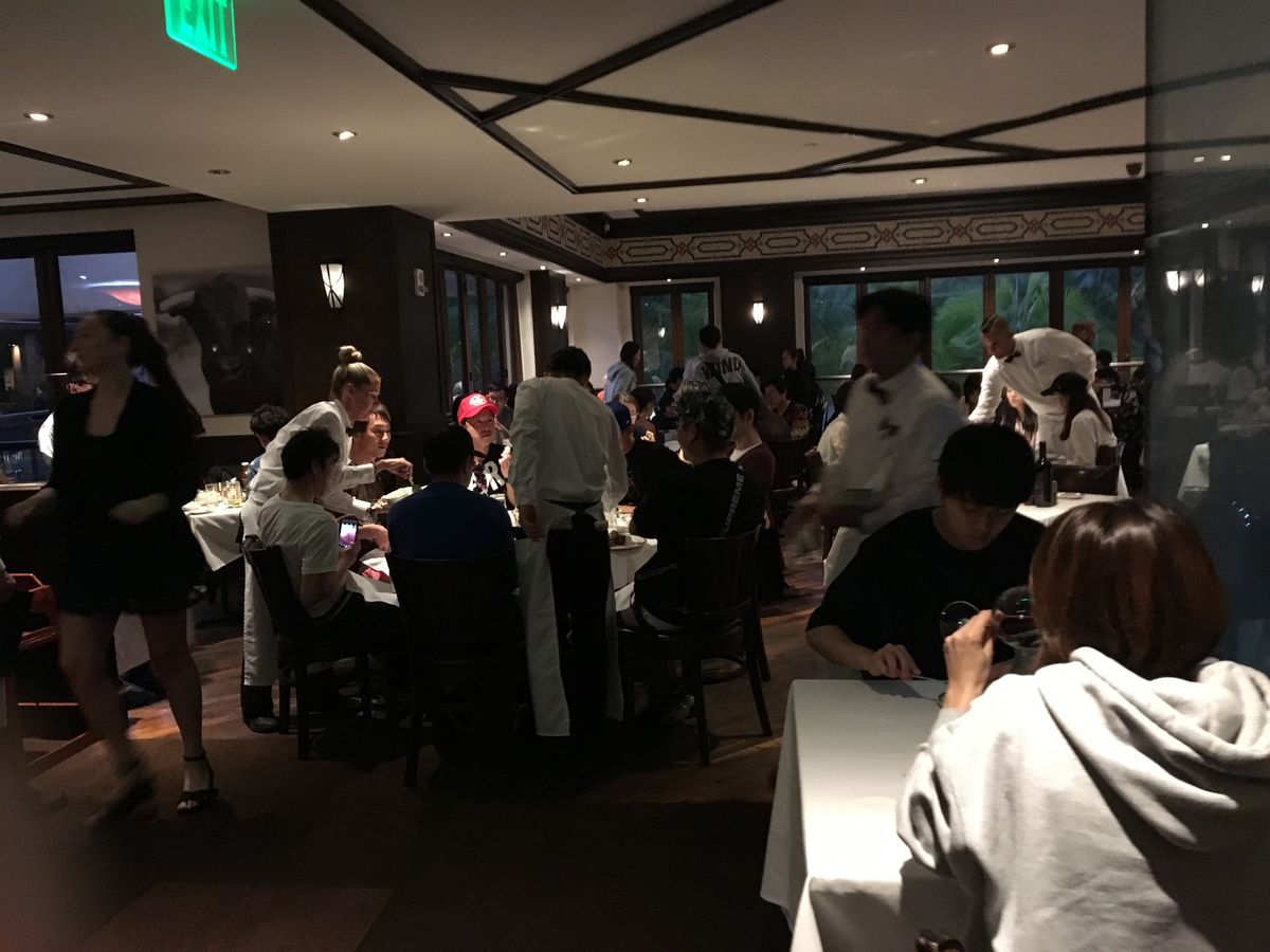 ハワイの来るたびウルフギャング・ステーキハウスに行きます。今回も最終日に伺いました。新しいステーキハウスが出来ているのに変わらず混んでいました。18時に予約しましたが、待たされることも無く席に通されました。回りは日本人だけで日本人をまとめたエリア??