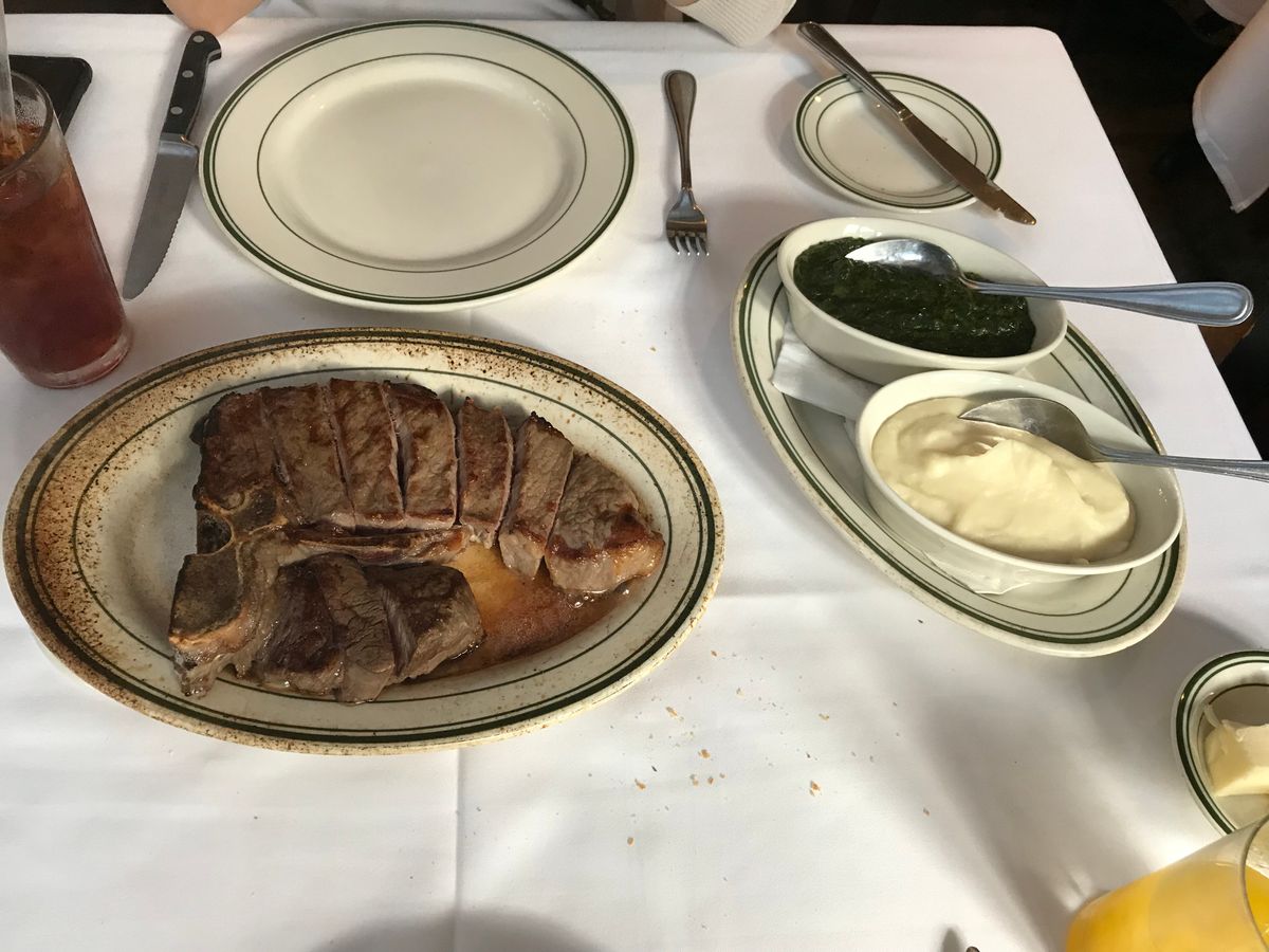 周りの単品注文をしているお客の中には、お肉以外のボリューミーなサイドメニューが次々にテーブルに並べられて言葉を失っている家族やTボーンステーキが運ばれた頃には彼女がお腹いっぱいになっていてお肉がお持ち帰りボックス行きとなってしまったカップルなど…