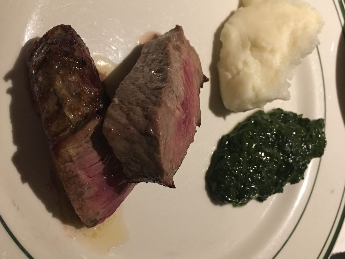 ミディアムは美味しく焼けていました。また付け合わせのほうれん草やマッシュポテト、飲み物はアメリカらしくでっかくて、良かったです。盛り方にセンスはないけど美味しかったです。あとウェイターの方はちょこちょこ気にかけてくれたので、親切でした。