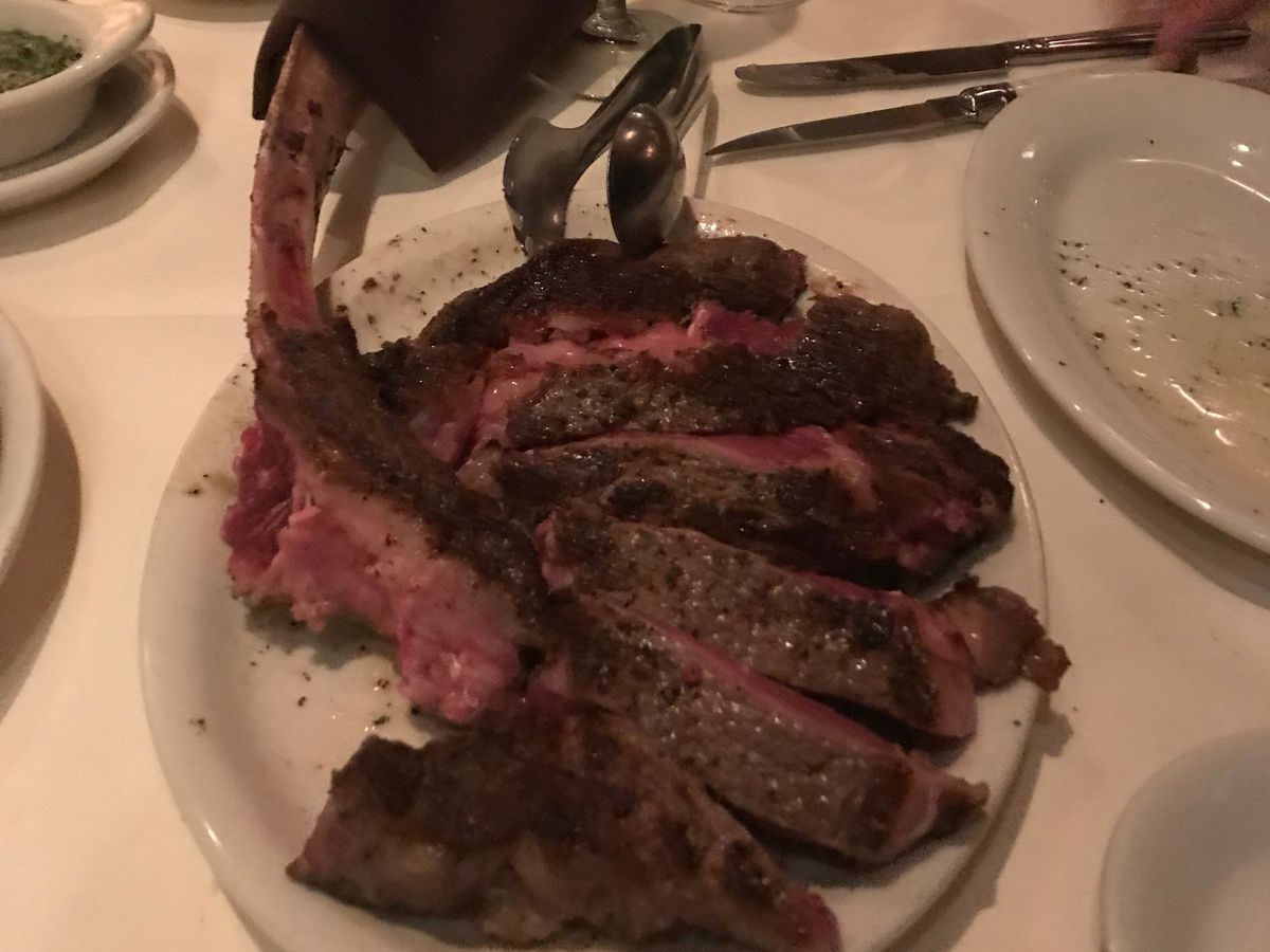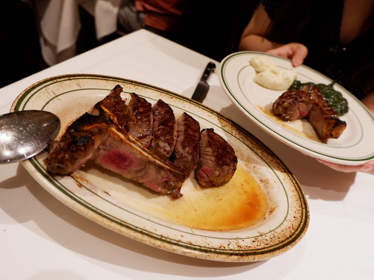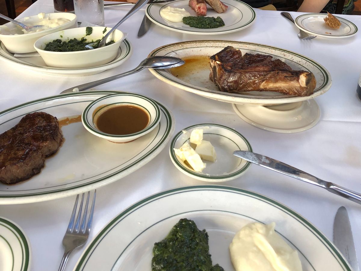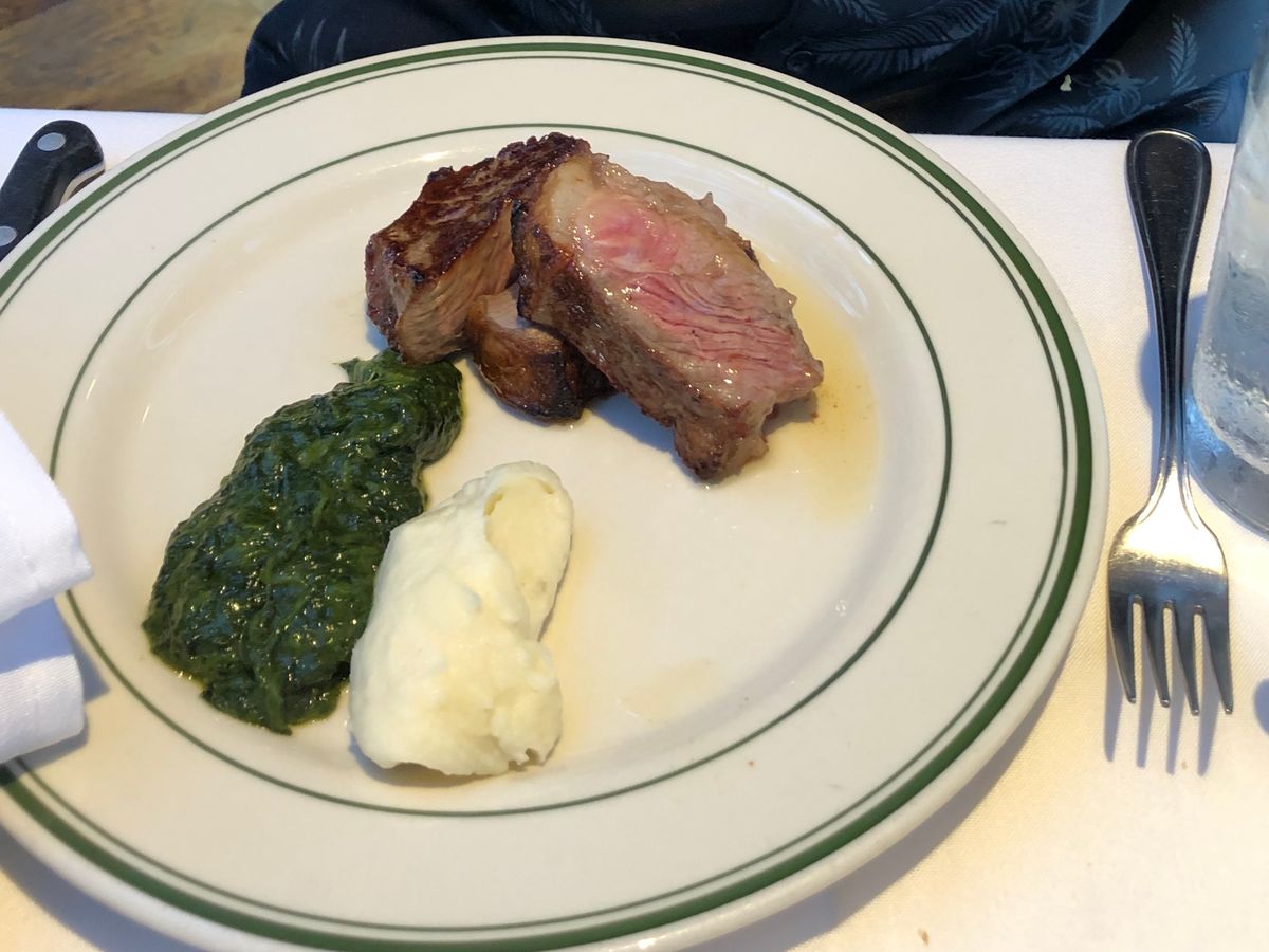 ニューヨークステーキと、リブステーキを注文しました。肉厚で、食べ応えがありました。付け合わせのポテトとほうれん草も美味しかったです。パンも美味しかったです。
