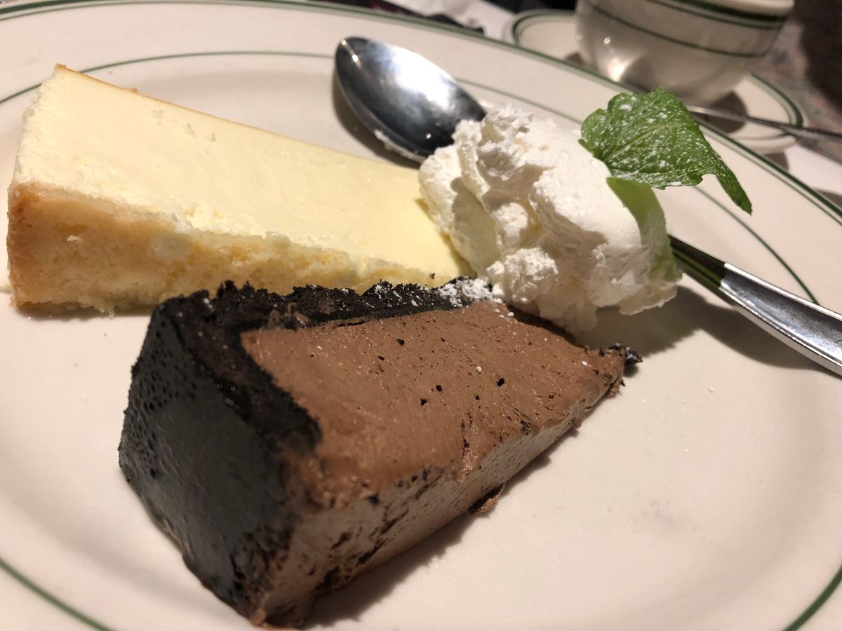 濃厚なチーズケーキとチョコケーキでしたが、この時点でお腹が一杯になっていたので、食べきれませんでした。クリームも付いてたのですが、軽いクリームで食べやすかったです。