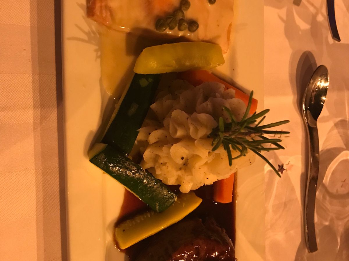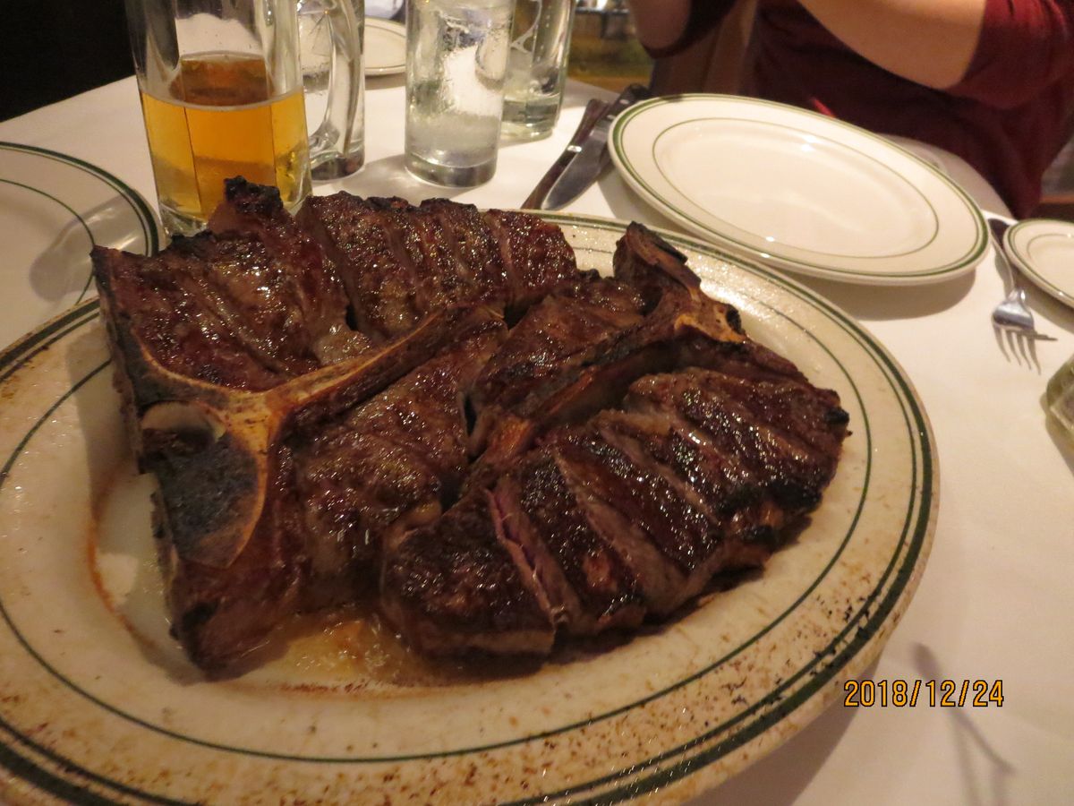 海鮮だけでも豪華、サーロインステーキも100グラムくらいと思っていたら、Tボーンの半分、肉厚、とても満足でした。これだけ食べても胸やけしないのは、新鮮さと良いお肉だからでしょう。来年もまたチョイスします。