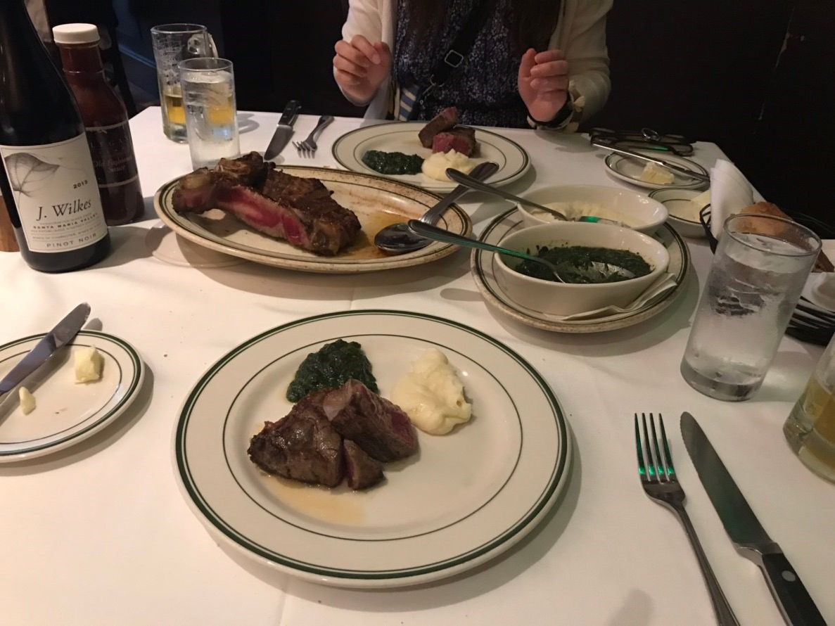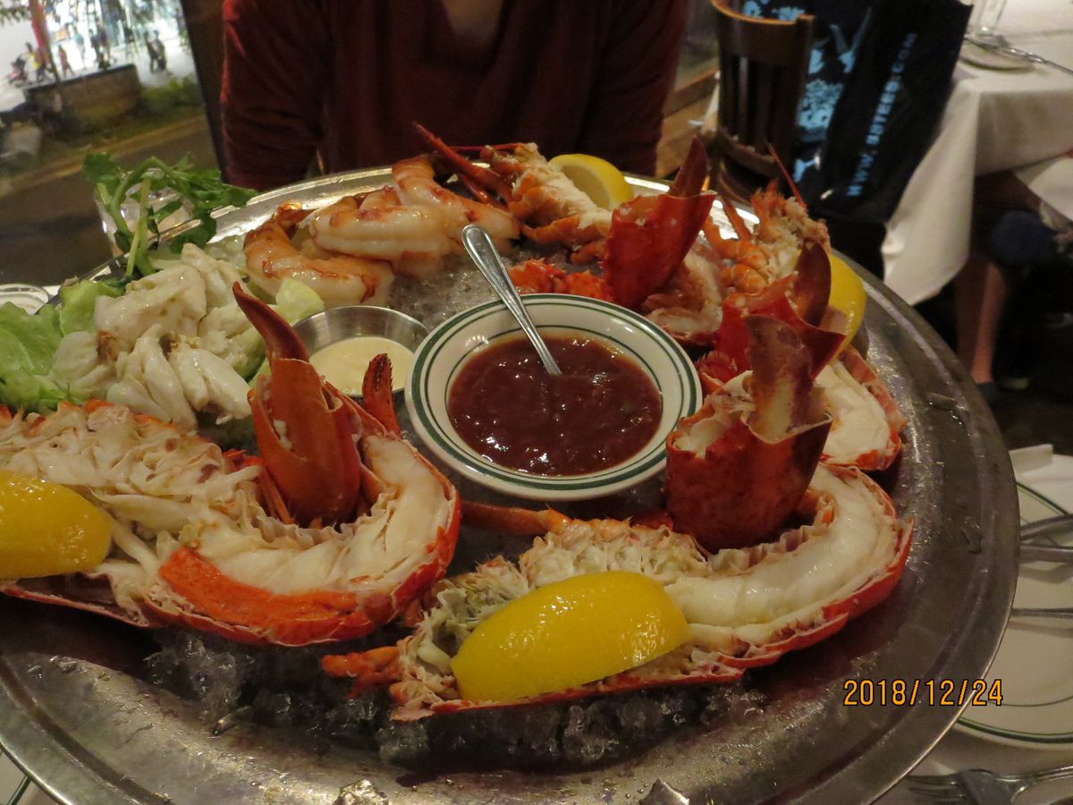 ウルフギャングでお肉をいただくのは、初めてでした。16:30の予約にお店に行くともうすでに何人も並んでいて、中に入ってバウチャーを見せたらすぐに案内していただき『予約しといて良かった〜〜」と思いました。席に着くと飲み物のメニューを見ましたがお酒も飲まない私たちは、注文するドリンクもなかったので早速お料理がどんどん出てきました。エビやカニをこんな風に豪快に食べるのも美味しかったし、お肉の量と質も感動でした。いつも食の細い母がどのくらい食べれるだろうか心配しましたが、美味しいのでしょういつもの倍以上よく食べてびっくりしました。私たちの席についてくださったおじいさんがとてもファンキーで可愛らしい方で、写真も撮ってくださったり楽しく食事ができました。追加のものを何も頼んでいなかったので、何も払うことはなくお店を後にしました。ハワイに来たら又行きたいお店です。