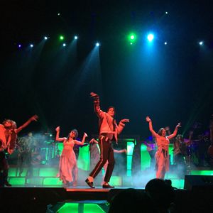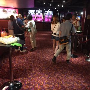到着後すぐにディナーの方達は、シアター入り口へ通されまして、マイケルジャクソンと写真撮影し、Barをイメージしたロビーでマイタイドリンク(アルコール入りか無しか選べる)を片手にスナックを頂きました☺︎♡
