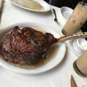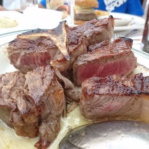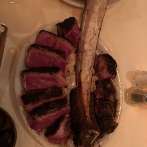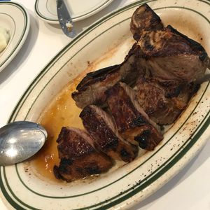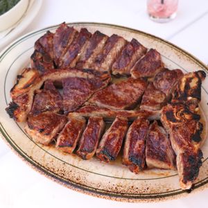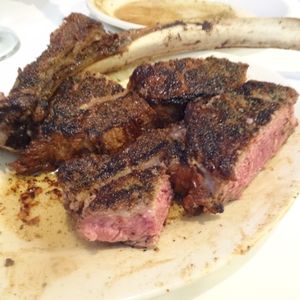 席について楽しみに待っていると、テーブルに運ばれてきたその骨つきの大きな肉を見た瞬間、その脂ぎった迫力のある豪快なインパクトにはびっくりしたのを覚えています。