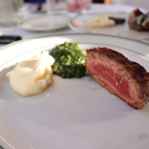 Tボーンステーキの他、スピナッチ、マッシュポテト、伊勢海老などがついてきます。