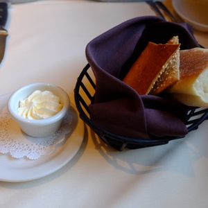 ディナーのお食事は、某ディナークルーズのロブスターより小振りでしたが、苦味がなく美味しかったですお肉にかかっていたソースは甘めでしたので、塩辛いものがお好きな人には物足りないかもしれません。"ソルトプリーズ"と頼んで塩を持って来てもらっていた方もいました。