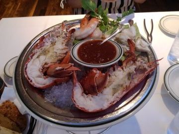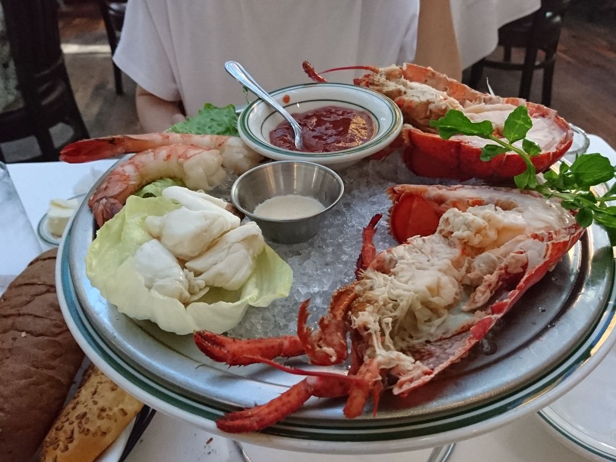 前菜のシーフードのロブスターはどうやって食べればいいのかわからず、少ししか身が食べれなかったけど、美味しかった。