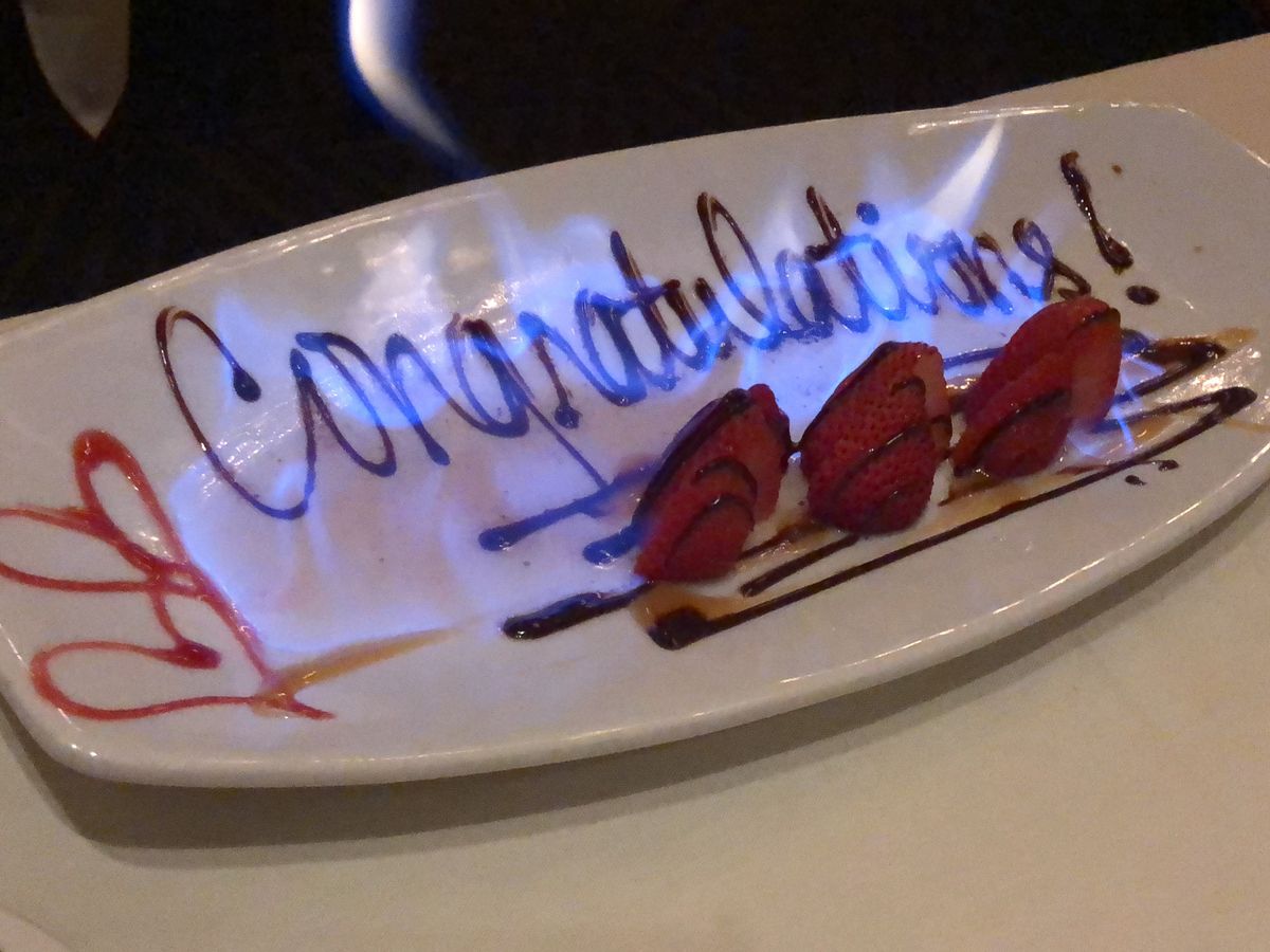 お料理もすべておいしく、最後はお祝いメッセージ入りのデザートが来ました。