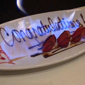 デザートも美味しくいただいて、お腹いっぱいなりゆっくりしていたら、記念プレートが運ばれてきました!