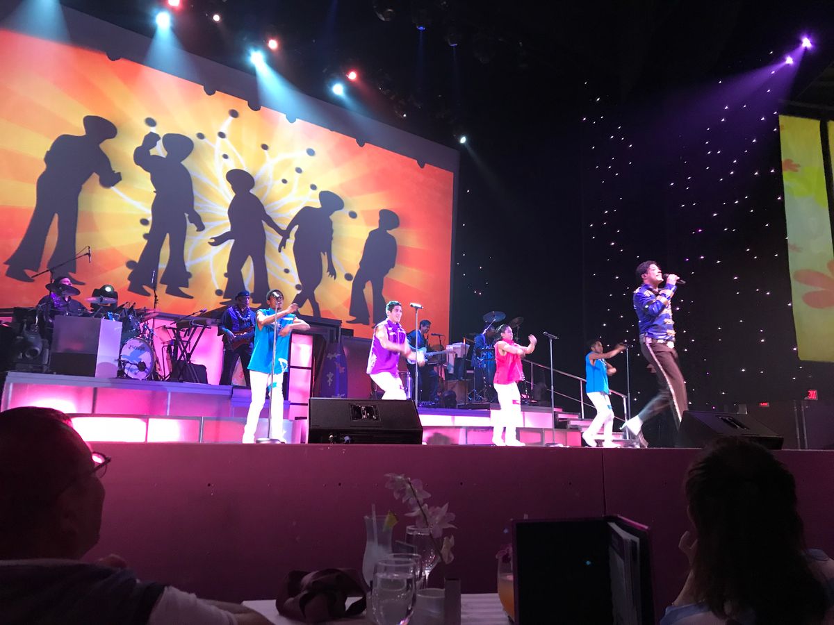 ショーは展開が早くて、飽きることなく楽しめましたし、メインのお三方はステージから降りて来て握手して下さったり、プレゼントを渡してくださったりとファンサービスもあり、ビュッフェの方やショーのみの方へも歩み寄ってサービスされていて、再度見に行くときはそちらでも十分楽しませてもらえるなと思いました
