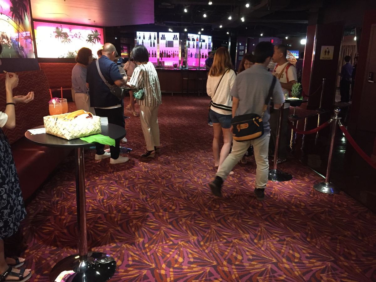 到着後すぐにディナーの方達は、シアター入り口へ通されまして、マイケルジャクソンと写真撮影し、Barをイメージしたロビーでマイタイドリンク(アルコール入りか無しか選べる)を片手にスナックを頂きました☺︎♡