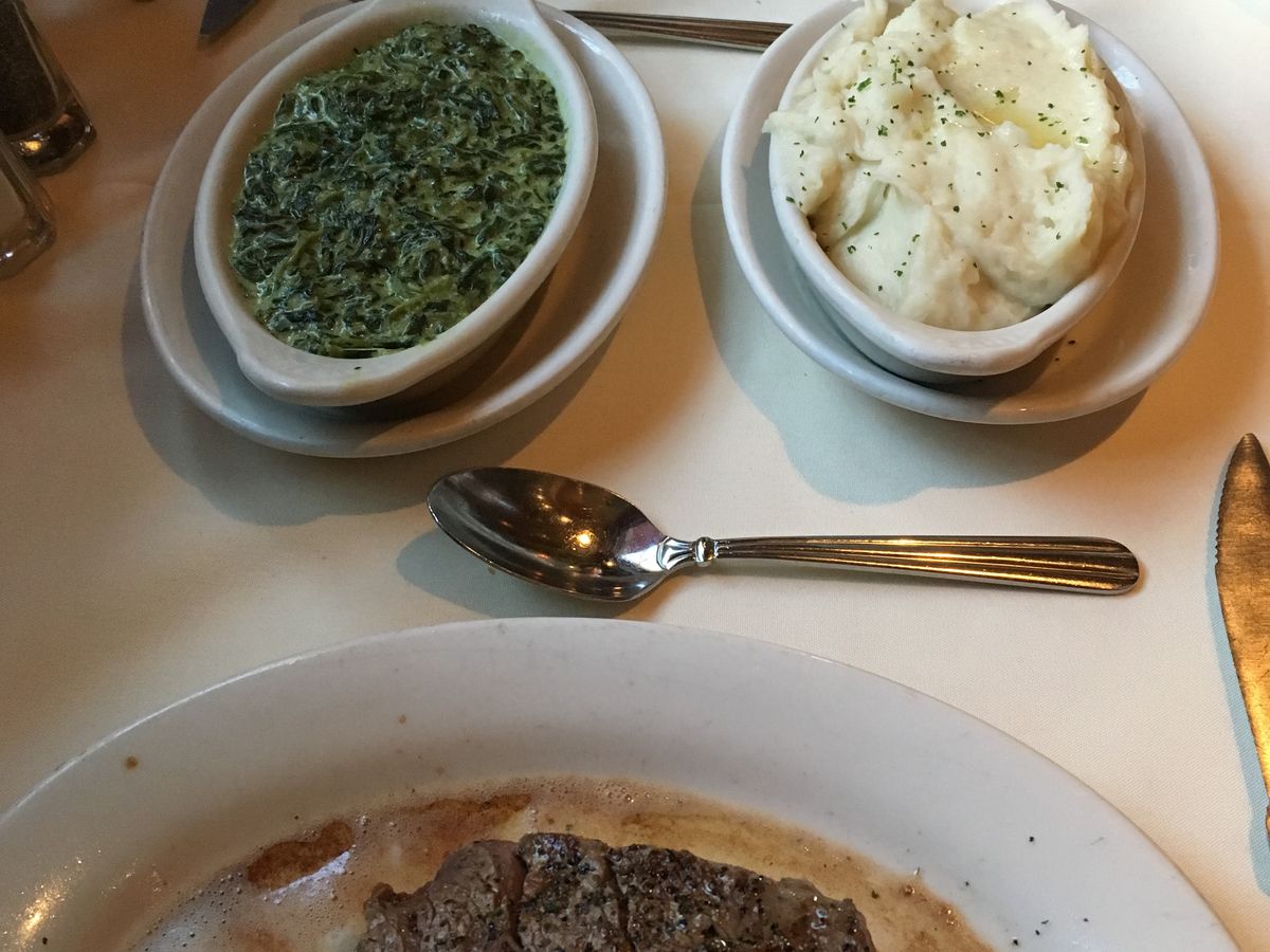 Tボーンステーキの他、スピナッチ、マッシュポテト、伊勢海老などがついてきます。