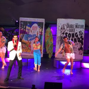 ショーは、歌い手とフラのダンス、ロックのダンスが上手く融合されていて感動。モアナの曲では子供も大満足。マイケルジャクソンは名曲をうまくカバーしスリラーのバックダンサーも本格的で最高でした。エルビスは会場を周りながら歌い、目があった数名にエルビスの肩から掛けているマフラーをプレゼント。うちの子がそれをゲットできたので、私たちグループで大喜びでした。ショーを堪能した後は、ゲストと写真を撮ったりサインをもらったり握手をしたり近くでサービスしてくれて大満足のオプションツアーでした。私たち仲間はハワイでこれが一番楽しかったと喜んでいます。