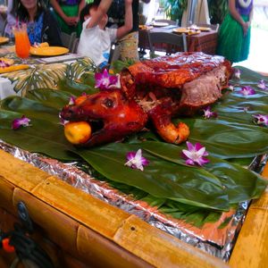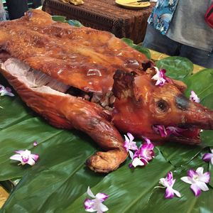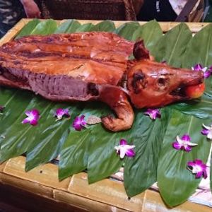 友達と家族でハワイ旅行初参加致しました。始めに豚の丸焼きバフェでワンドリク付き。乾杯の後は美味しいハワイテイストの食事をたくさん堪能しました。肉は豚肉以外にもその場でカットしながら牛肉もありどちらも沢山食べられます。また、マグロやサラダもハワイ風の味付けで美味しかったです。デザートやコーヒーもありましたよ。食事中は、生演奏の中、フラを3人の男女が近くで踊ってくれもりあげてくれました。後半は私たちも一緒に教わり踊りながらみんなでワイワイ良い思い出ができました。幼児も連れて行ったので、スタッフが食事中に子供だけ集めて会場の中に連れていきゲームをして景品をもらって来ていました。