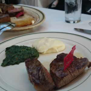 ステーキは柔らかくて最高!前菜のカニとエビも美味しかったです。2人でお腹いっぱい食べることができました。