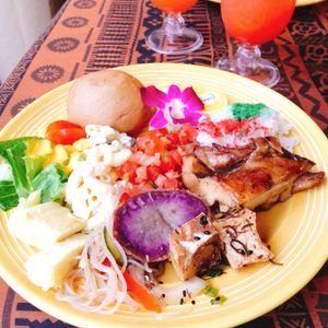 料理を食べながらフラショーやウクレレを弾いてくれていてそれはすごく楽しめました。