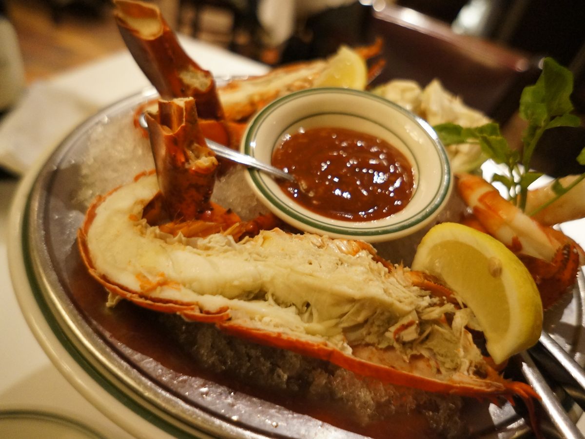 前菜のロブスターを食べる際には、殻をむくなどする必要がありました。