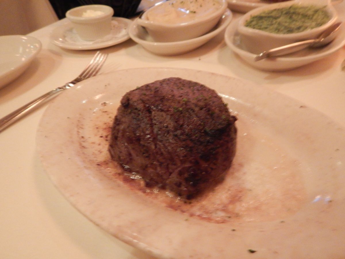 テーブルへ。最高。ステーキもちょうど老夫婦には好いぐらいでした。