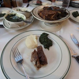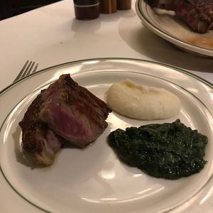 熟成された肉の焼き加減も最適、また付け合わせのホウレンソウやマッシュポテトも美味でボリューム満点。皆満腹で大満足、幸せな気分に浸ったディナータイムでした。