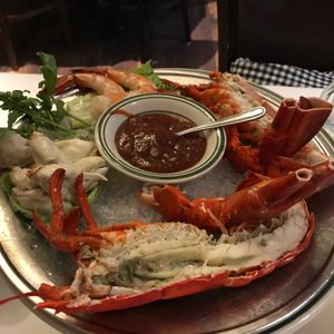 お料理はすぐに運んでくださり、まず前菜のロブスター!凄い量!笑いが止まりませんw