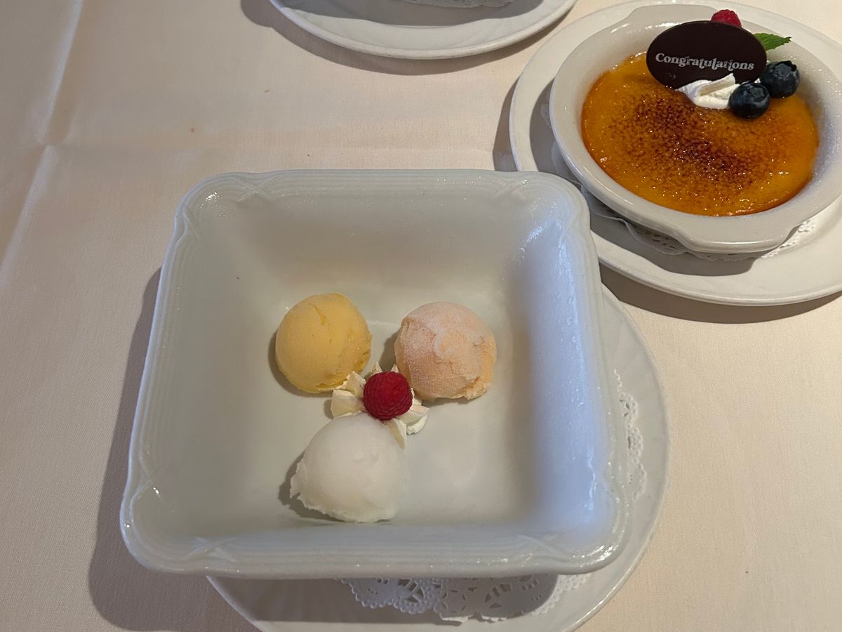 ですがその後の対応がとても良くデザートのときにはお祝いメッセージプレートとパフォーマンスもありとても気持ちよく食事できました。お肉もボリュームがすごくお腹パンパンになりました。