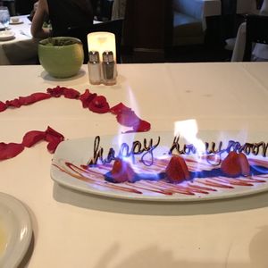 ハネムーンで予約をして行きました。スタッフさんの対応もとても良く早い時間の予約だったからかバラの花びらでテーブルにハートを作ってくれたり、デザートのサービスもしてくれたりととても良い思い出になりました。お腹もおいしくて大満足でした。とても混んでいるお店なのでベルトラで予約を入れてよかったです。
