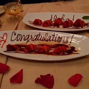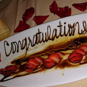 そしてデザートの時にイチゴブランデーのデザートプレートをサプライズサービスで