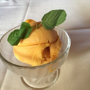 後、デザートのマンゴーシャーベットはマンゴーをそのまますり潰したように濃厚でした☆