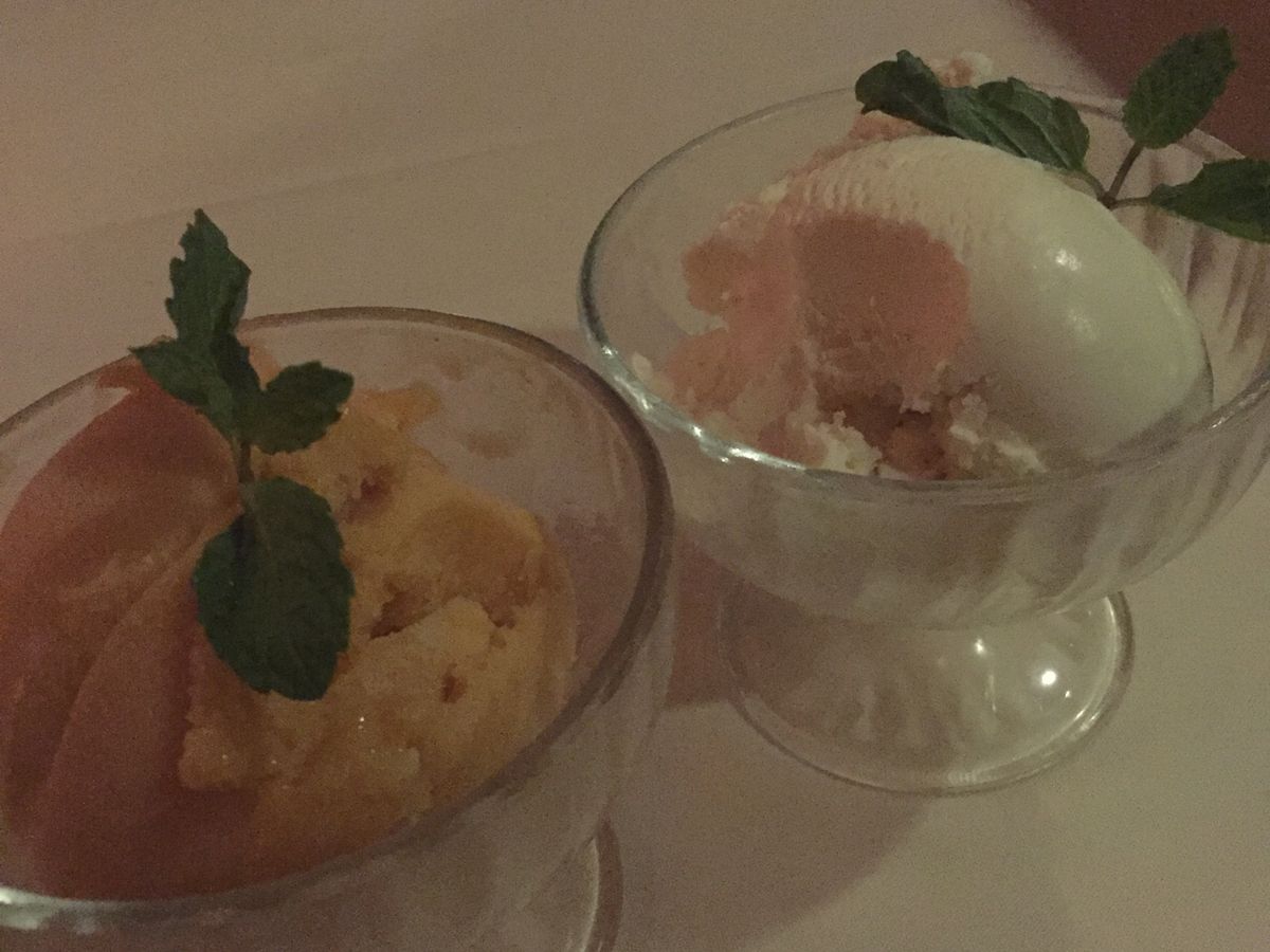 後、デザートのマンゴーシャーベットはマンゴーをそのまますり潰したように濃厚でした☆